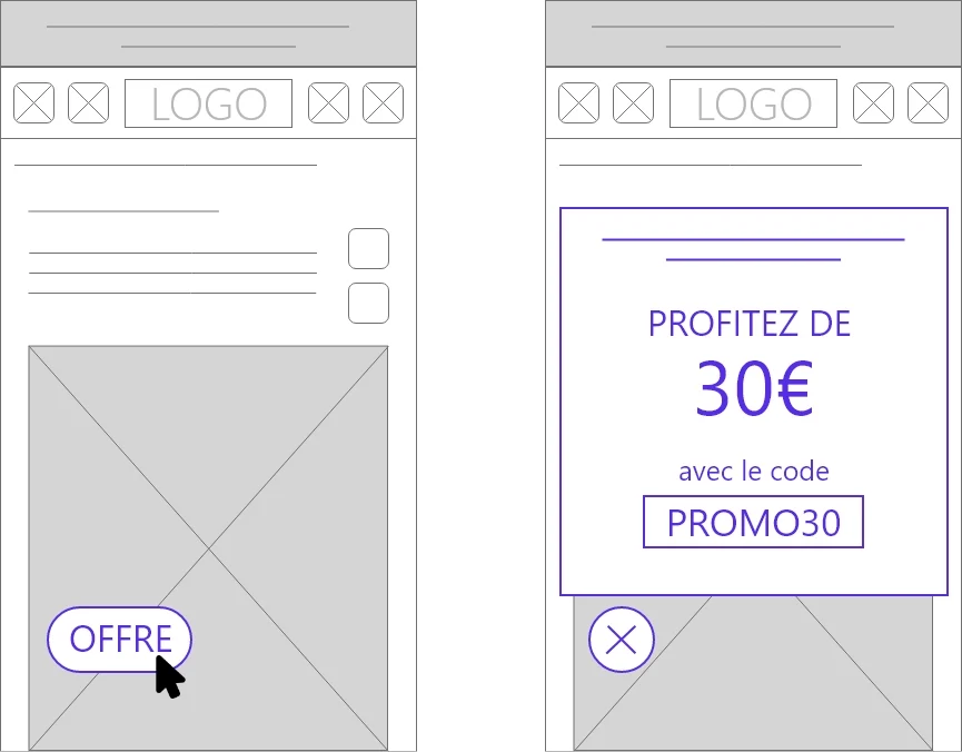 On mobile, traffic can represent an important part, however conversions are not always there. Highlighting promotions is one of the solutions to improve conversion on this medium. Results: + 37% conversion rate on mobile Mobile experience / e-commerce site The objective of the promotion is to encourage mobile visitors to continue their journey. In this case, the promotional offer is triggered during the visitor’s second session when the latter has abandoned a basket.